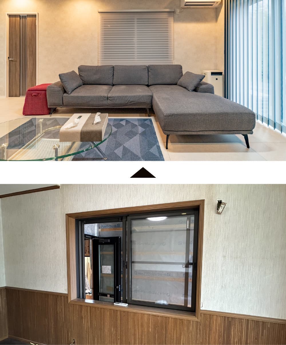 リフォームにあたっては、外窓の交換や内窓(インプラス)の設置、天井や床への断熱材施工を行い、住まい全体の断熱性を高めました。